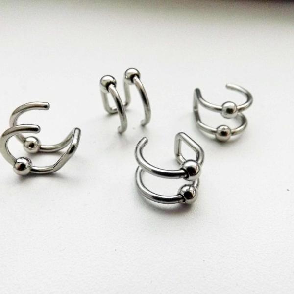 Steel Double Hoop Cartilage Clip On with Balls