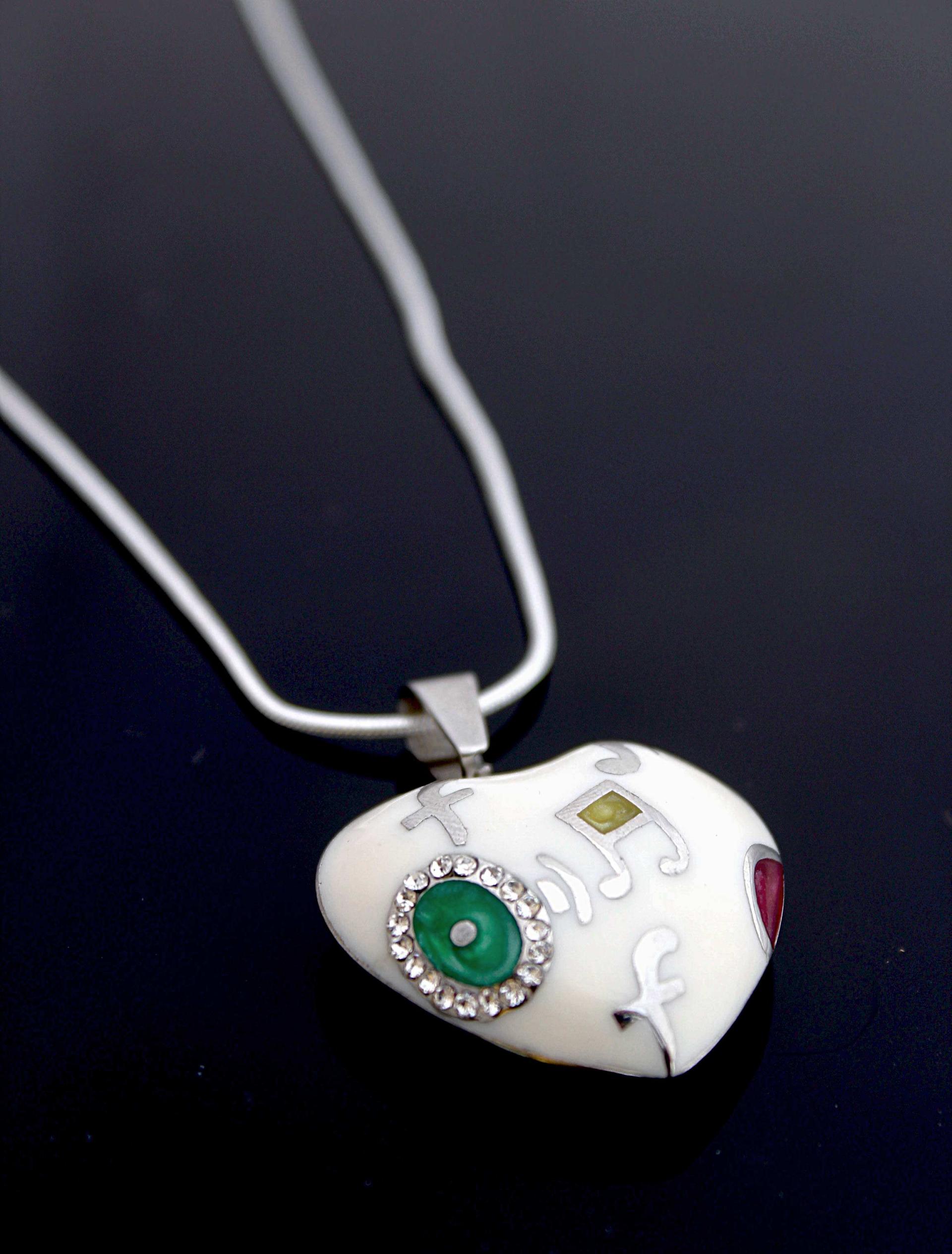 Be the star attraction when you wear this Stainless Steel Colourful Enamelled Musical Note Flower Love Heart Pendant featuring crystal stone detail.