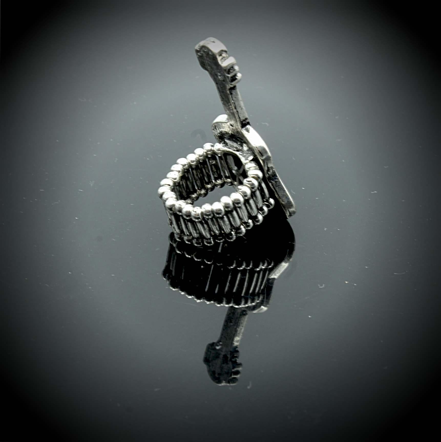 This is a fab ring featuring a stretch crystal strap hence making it totally unisex! Great for anyone with a love of guitars or music!