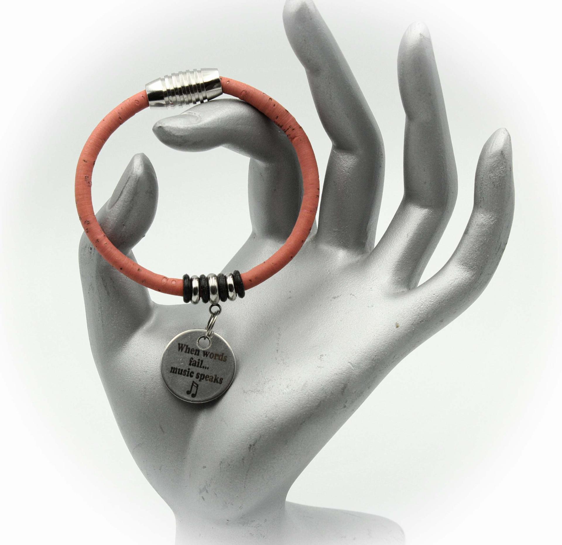Music Bracelet "Where words fail music speaks" Natural Cork Bracelet Customisable
