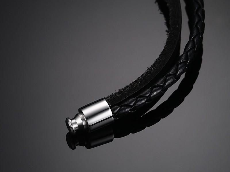 This is a great punky style bracelet featuring a quality stainless steel solid clasp. This bracelet features 2 wraps of genuine leather, one braided and one flat leather.
