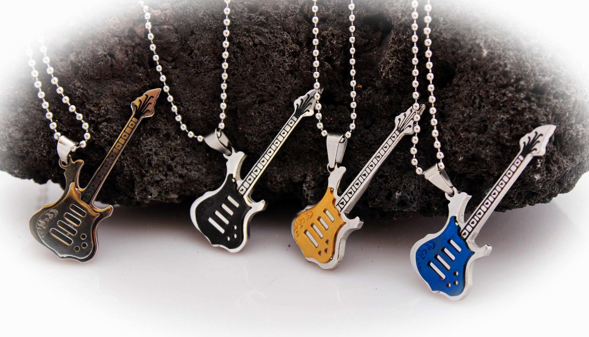 Share your guitar passion with our titanium steel guitar replica pendants.