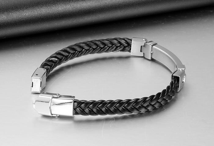 This flat braid leather bracelet is approx 21.5cm and will come in a velvet presentation pouch.